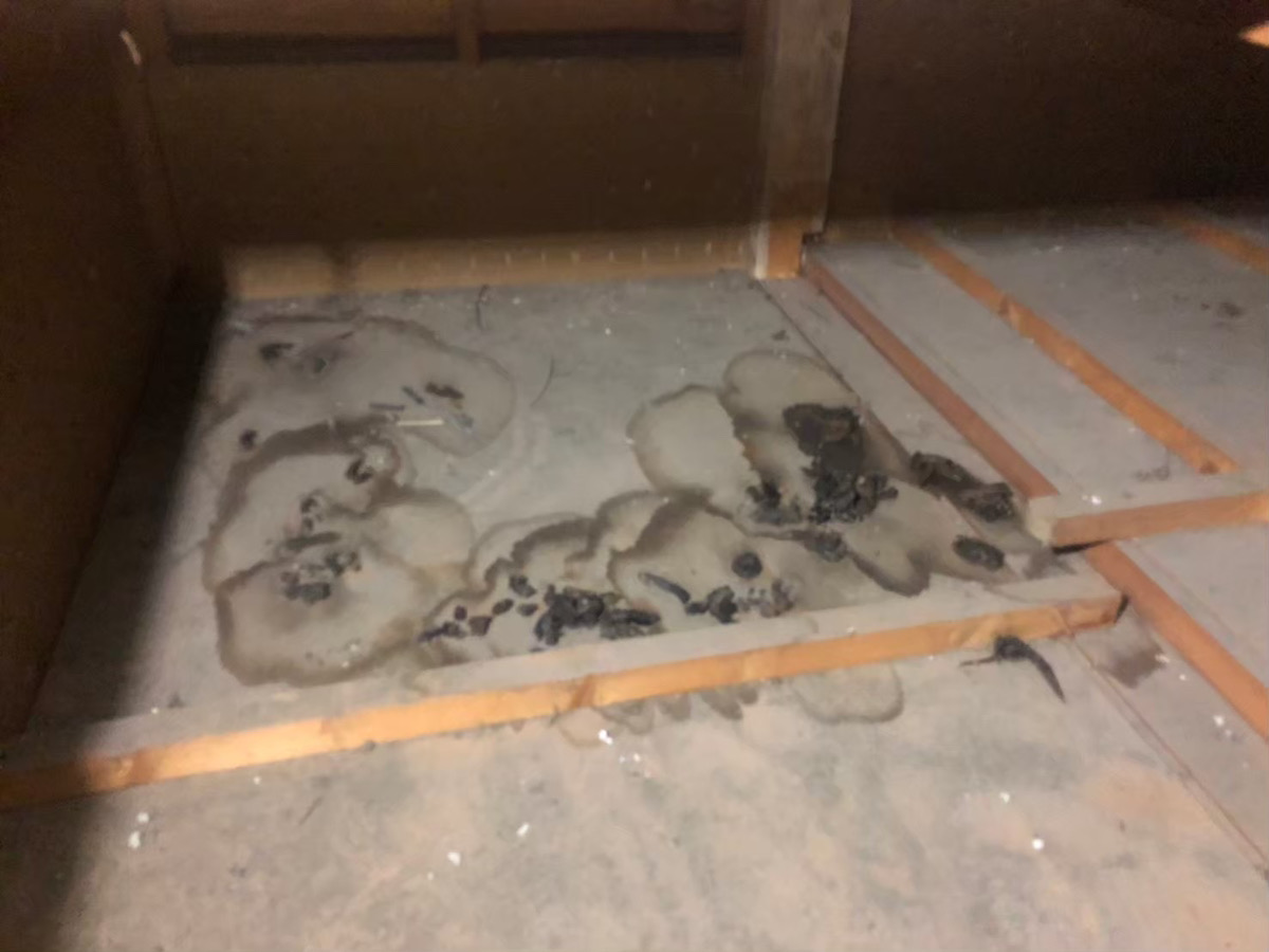 屋根裏を確認すると、すでに糞尿被害は拡大しており